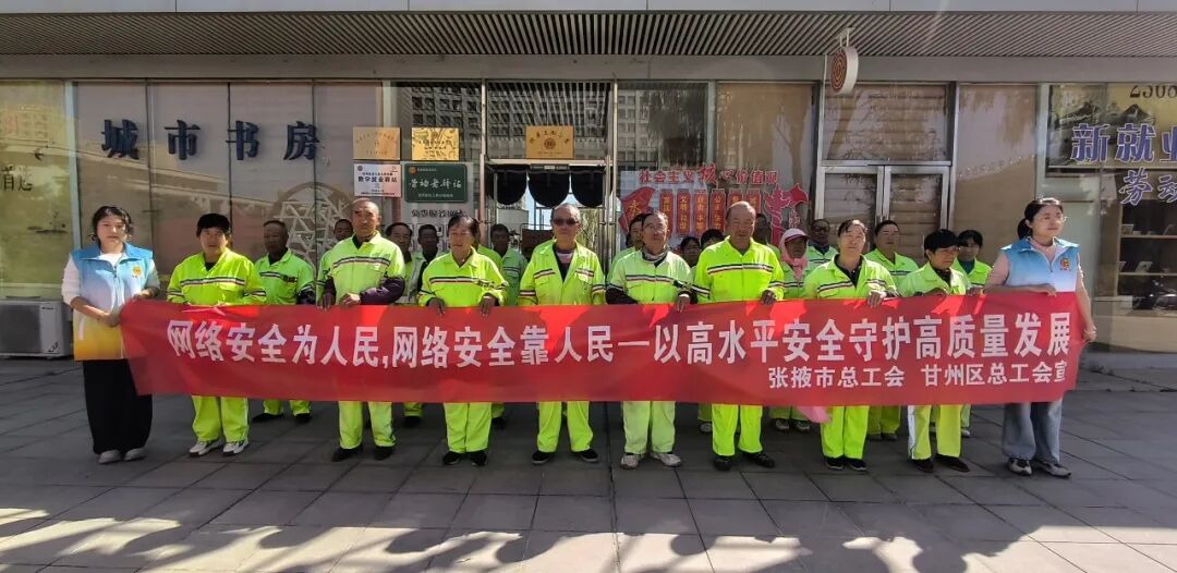 9月23日,张掖市总工会联合甘州区总工会在人民公园工会驿站开展网络安全宣讲进驿站活动,30余名环卫工人参加活动。