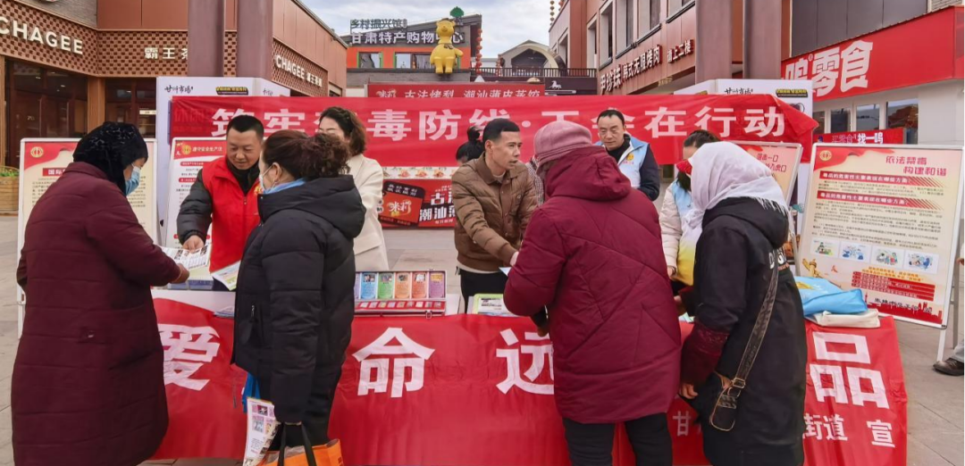 精准走进企业,守护职工安全。组织市总工会干部与社区志愿者走进甘州市场北区,搭建宣传展台,悬挂主题横幅、摆放科普展板,向过往职工群众发放禁毒防艾宣传彩页。针对新型毒品的伪装性、隐蔽性等特点,现场开展专业讲解,细致解答群众疑问,提供禁毒知识咨询服务,帮助职工群众提升识毒、防毒、拒毒的“三大能力”,筑牢职场与生活中的禁毒防线。