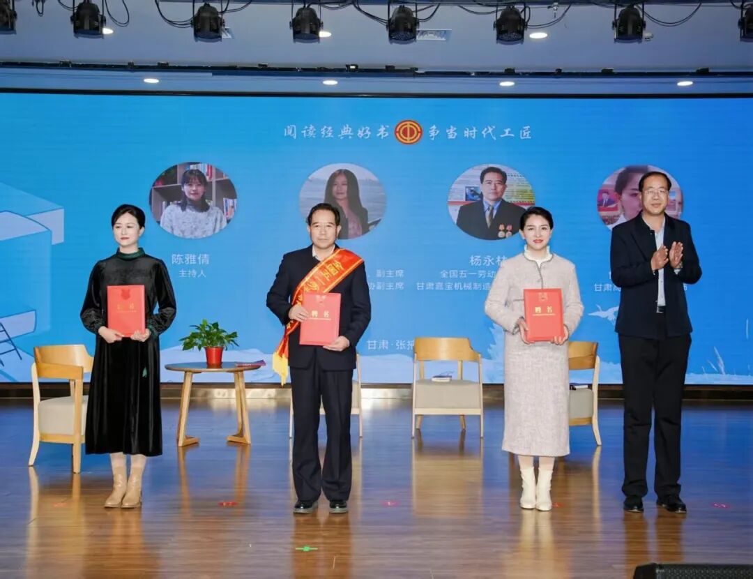 在嘉宾访谈环节,甘州区文联副主席、市作协副主席武强华,全国五一劳动奖章获得者杨永林,高台干部学院教师张琼围绕“阅读的力量——从红色传承到匠心筑梦”展开深入对话,分享了对阅读与成长、创新与坚守的感悟,并获聘为“张掖市职工书屋阅读推广大使”。