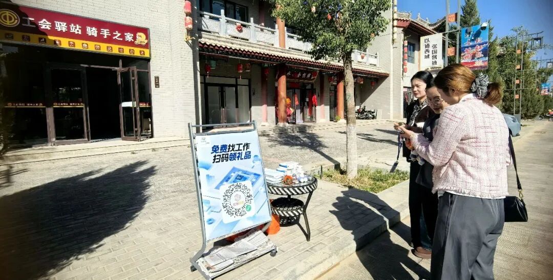 甘州府城的骑手之家驿站前,几张方桌、几块展板,已然围拢了不少人。“想找什么样的工作?扫码看看,岗位挺多的!”甘肃红海人力资源有限公司张掖分公司的工作人员笑着递过宣传页。
