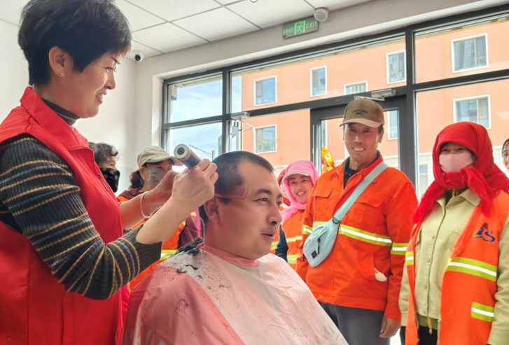 每当有环卫工人来到工会指定的“爱心理发”服务点,理发师们都会热情招呼,为每一位前来理发的环卫工人耐心设计发型、精心修剪。伴随着剪刀的咔嚓声,一缕缕头发飘落,不一会儿,原本略显凌乱的头发变得整齐利落,焕然一新的面貌让环卫工人仿佛年轻了好几岁。
