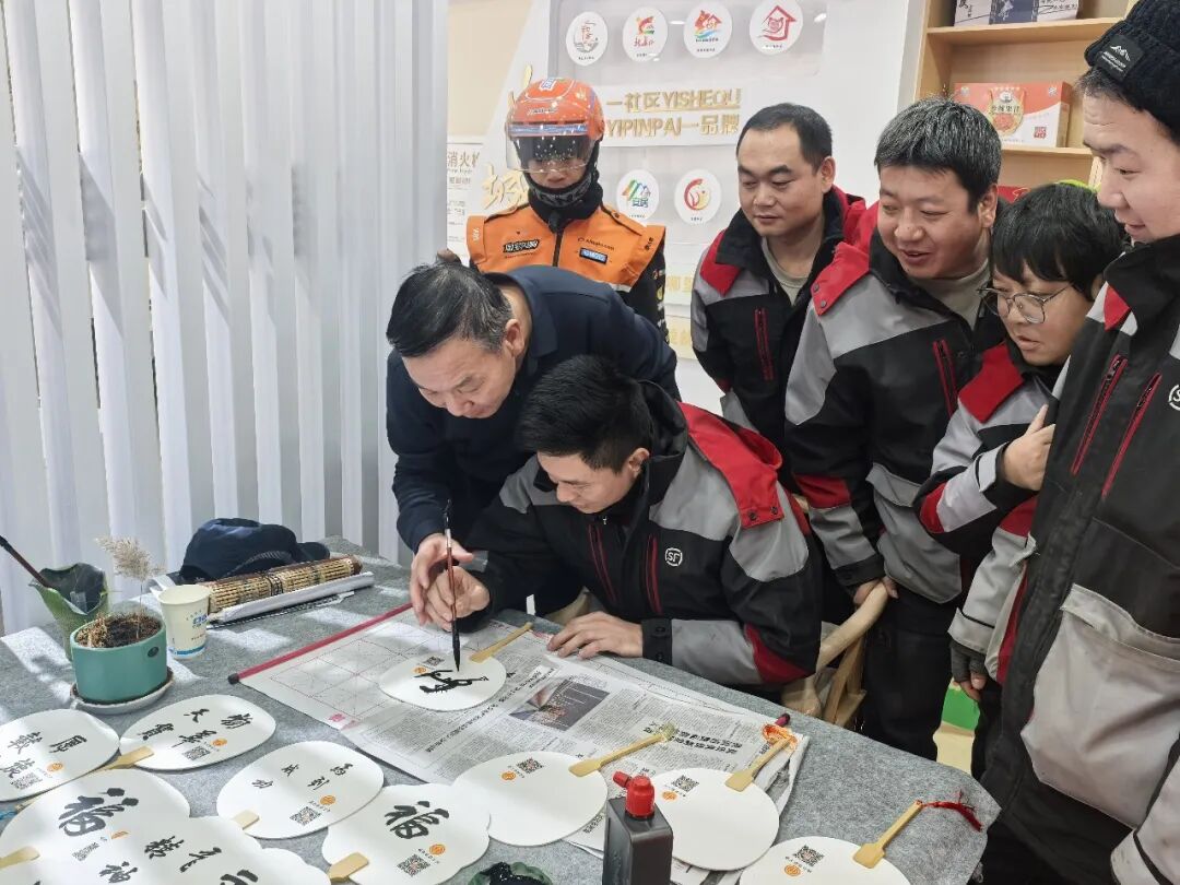 在充满传统文化韵味的漆扇写字体验环节,书法专业老师为大家细致讲解漆扇的文化渊源,手把手传授毛笔蘸漆写字的技巧。参与者们手持空白漆扇,在老师的指导下,凝神聚力将“马年大吉”“平安顺遂”“万事顺意”等美好期许一笔一划书写在扇面上,让温情与文化在指尖交融。