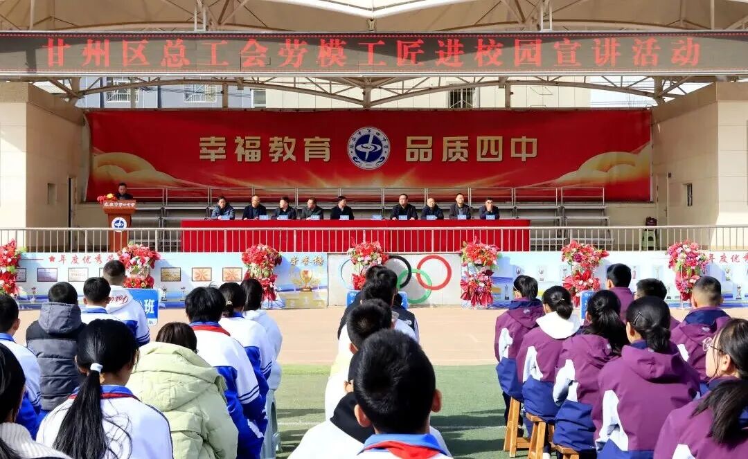为大力弘扬劳模精神、劳动精神、工匠精神,引导青少年树立正确的劳动价值观,近日,甘州区总工会“劳模工匠进校园”活动在张掖市第四中学火热开展,活动邀请了甘州区劳动模范雒奋廷为500余名新学期师生们带来一堂温暖而富有力量的“开学第一课”。