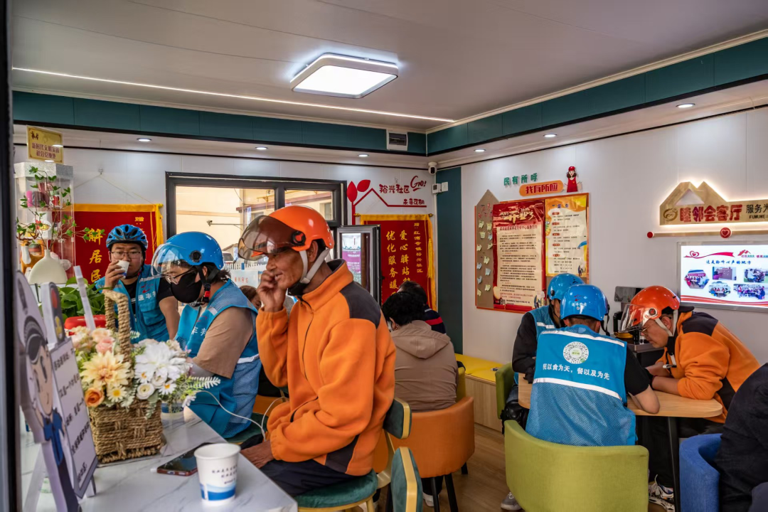 为让驿站服务精准对接群众需求,肃南县坚持问需于民,通过走访调研、召开座谈会等方式,广泛征求环卫工人、外卖骑手、快递员等群体的意见建议,持续优化驿站功能布局。如今,每座驿站均配备饮水机、充电设备、微波炉、储物柜、应急药箱等便民设施,还提供冷热饮、棋牌娱乐、临时休息等多样化服务;裕安小区驿站更是增设无线Wi-Fi、微型书屋,墙上张贴的招聘信息、维权指引和安全制度,让服务从基础保障向综合赋能延伸。截至目前,7座驿站累计服务户外劳动者近500人次,好评率高达99.89%。